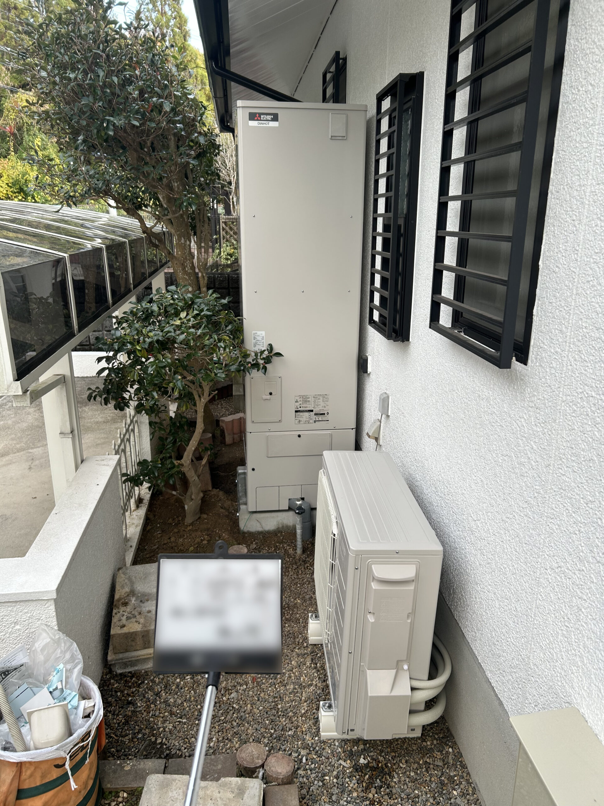 工事ではガス給湯器を撤去し、エコキュート本体と貯湯タンクを新設。配管・電気工事も含めて約1日で施工完了しました。