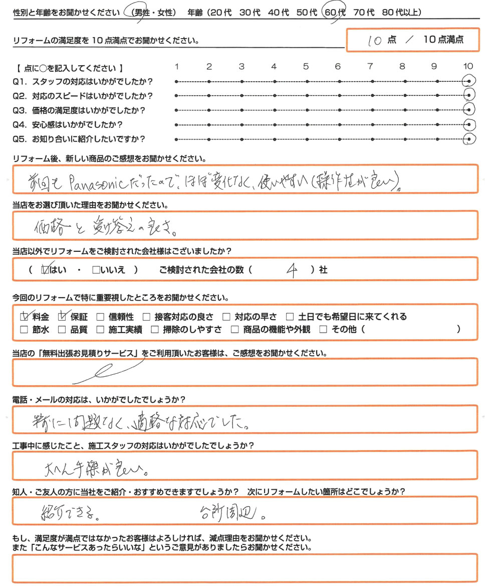 Q. 知人・ご友人の方に当社をご紹介・おすすめできますでしょうか?次にリフォームしたい箇所はどこでしょうか?