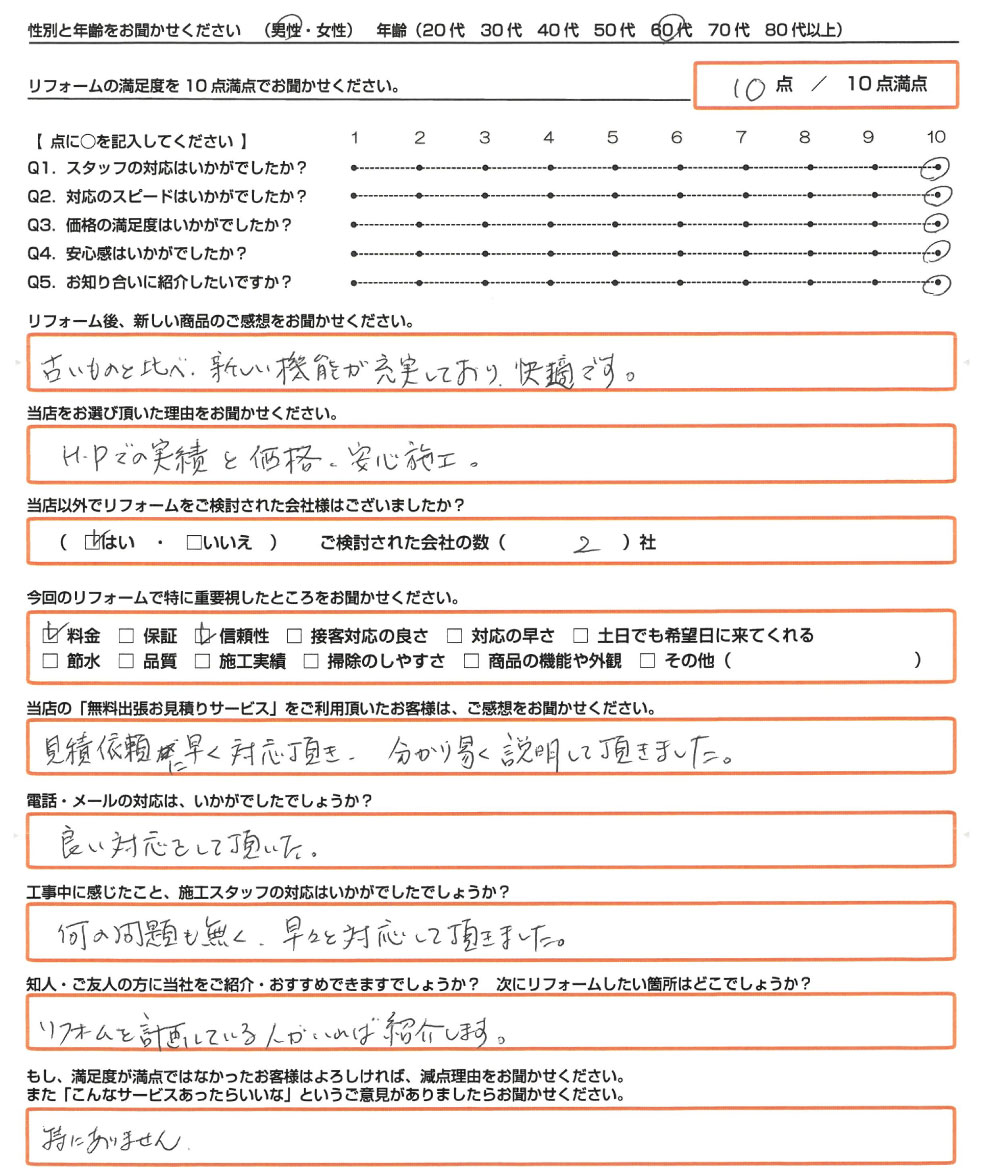 Q. 知人・ご友人の方に当社をご紹介・おすすめできますでしょうか?次にリフォームしたい箇所はどこでしょうか?